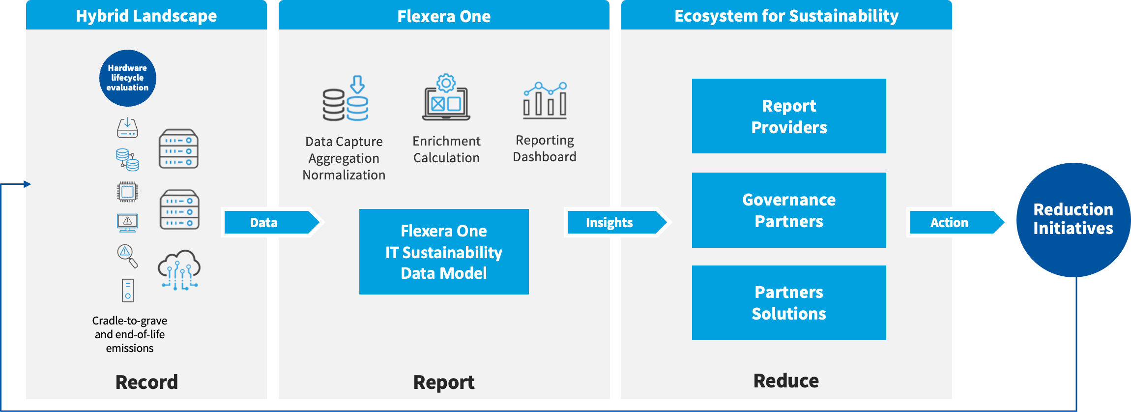 Not only are we focusing on our own environmental, social and governance (ESG) efforts toward sustainable IT, but we’re powering our customers to visualize and improve their own carbon emissions toward more sustainable technology. With Flexera One, customers can gain key sustainability benefits: