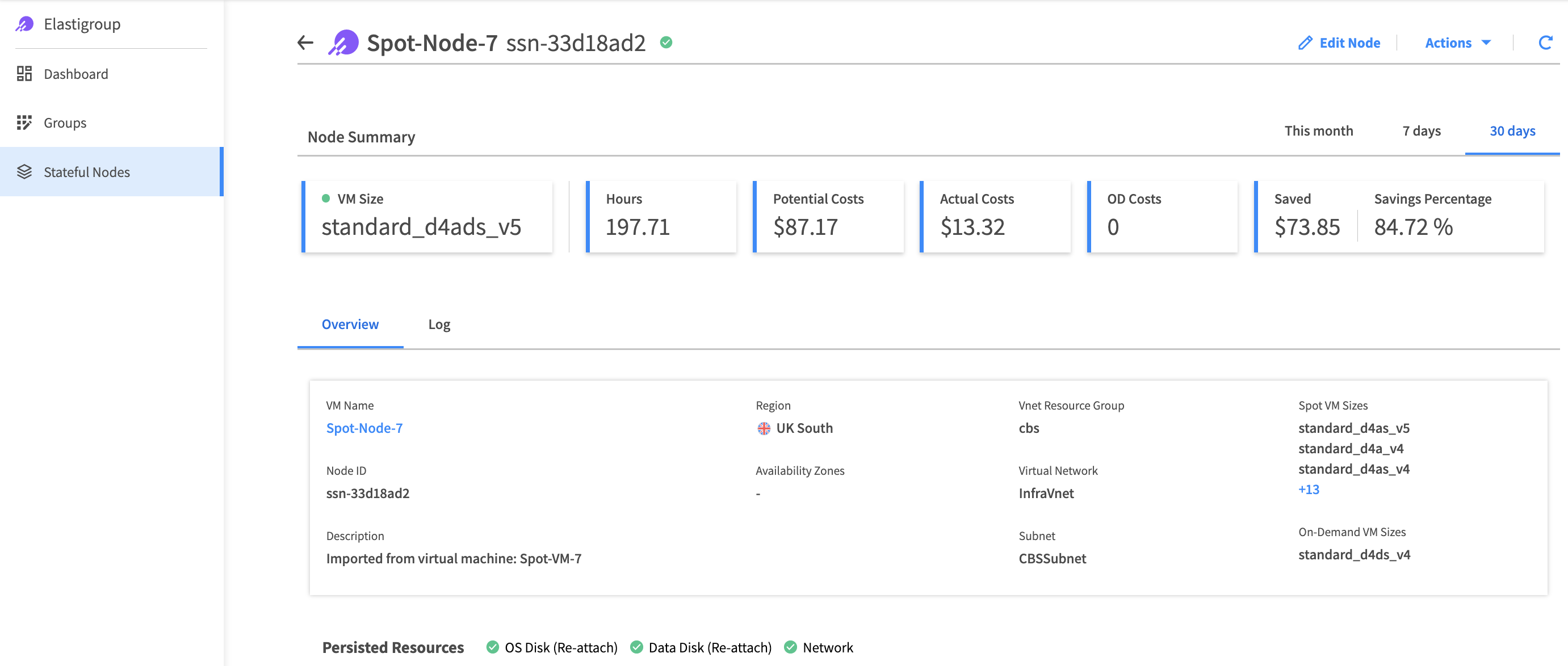 Similar to native Elastigroup, Stateful Node for Azure workloads uses the Spot VM spare capacity to run applications that require state persistence.