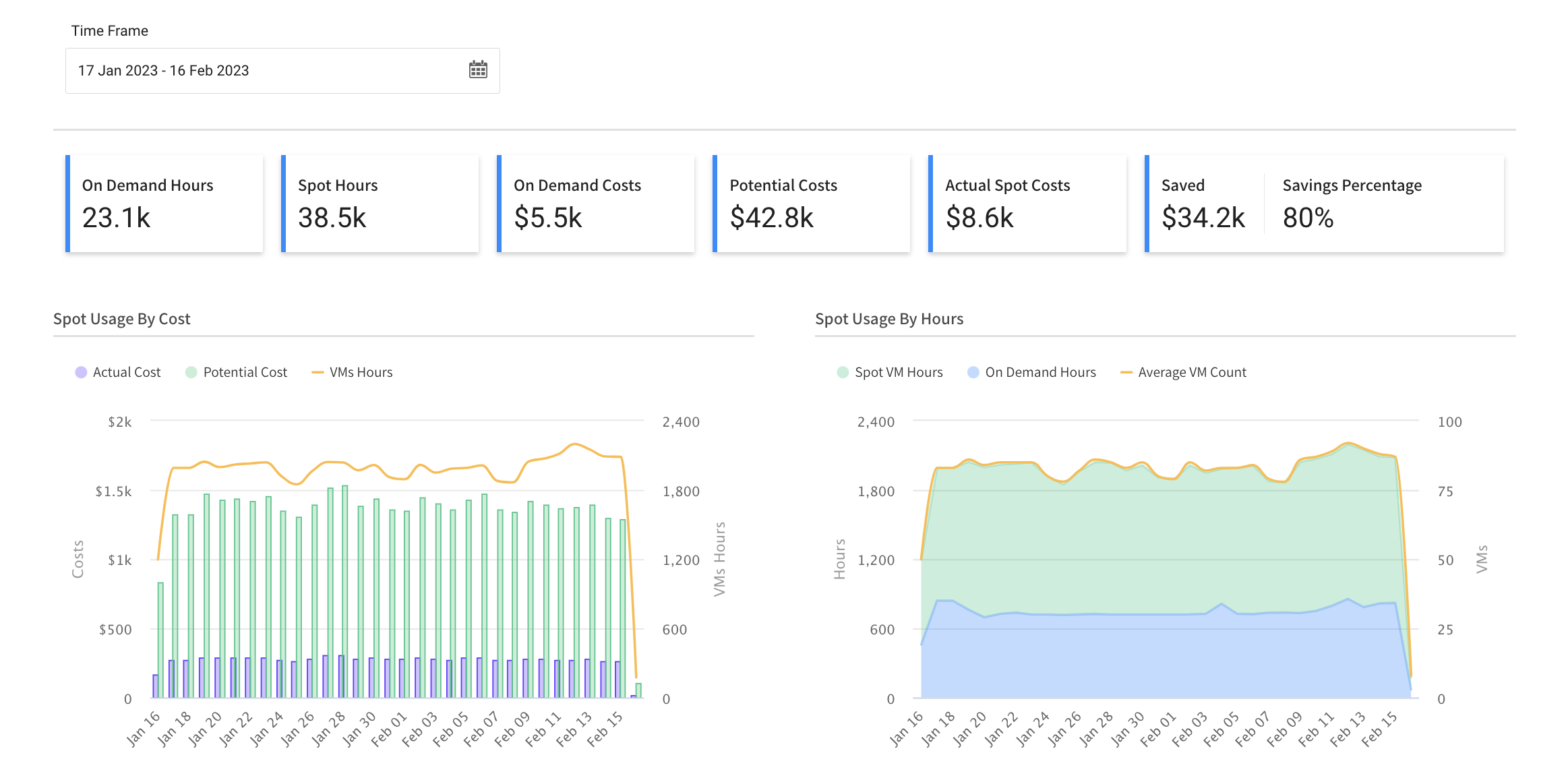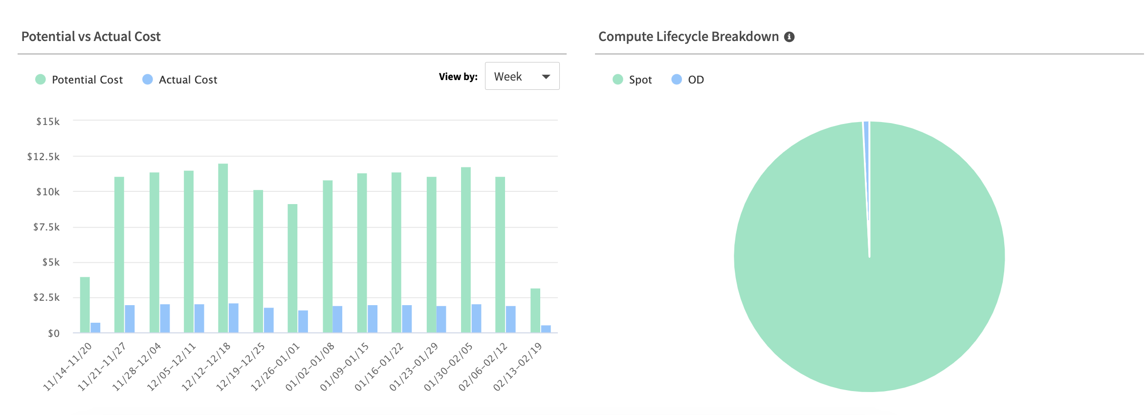 Via our overview dashboard, the customer can closely monitor their organization’s actual workload cost spend, lifecycle coverage, and actual savings generated by using the Stateful Node product.
