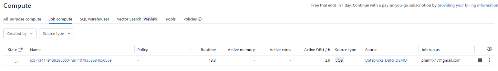 Job compute is tailored and reserved exclusively for executing production ETL jobs on a schedule. Whenever you initiate a job on a new compute, the Databricks job scheduler generates a job compute. Once the job concludes, this compute is automatically terminated and cannot be restarted. Job compute is also known as job clusters.