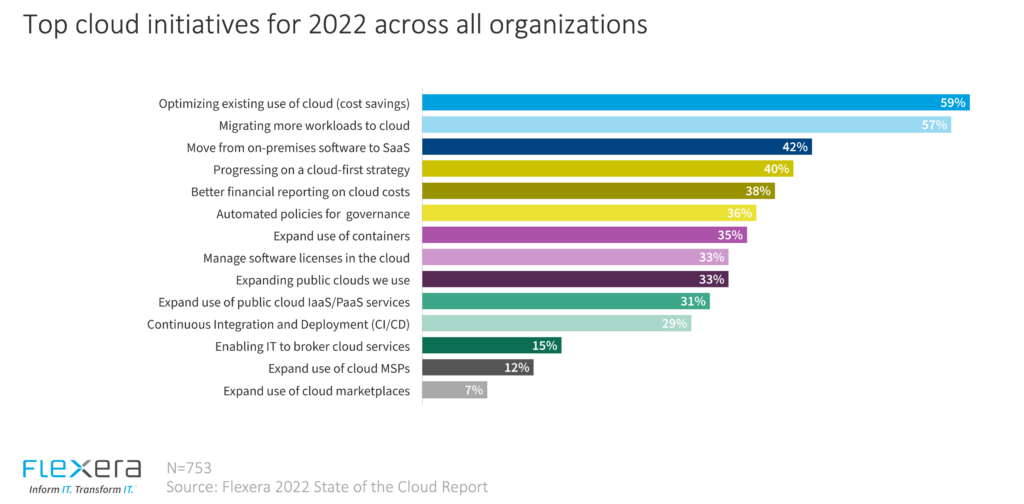 In recognition of International FinOps Day, we want to take this opportunity to make the topic of FinOps top-of-mind for those involved with their organization’s cloud journey. As Flexera’s State of the Cloud Report has shown year after year, IT professionals estimate that a significant portion of their cloud budget is wasted—this year the estimate is 32 percent, which is an increase from last year’s 30 percent, and the highest estimate we have seen in all the year’s of the State of the Cloud Report. Given this high level of waste, it’s not surprising the top cloud initiative in the State of the Cloud Report for six years running is optimizing existing use of cloud.