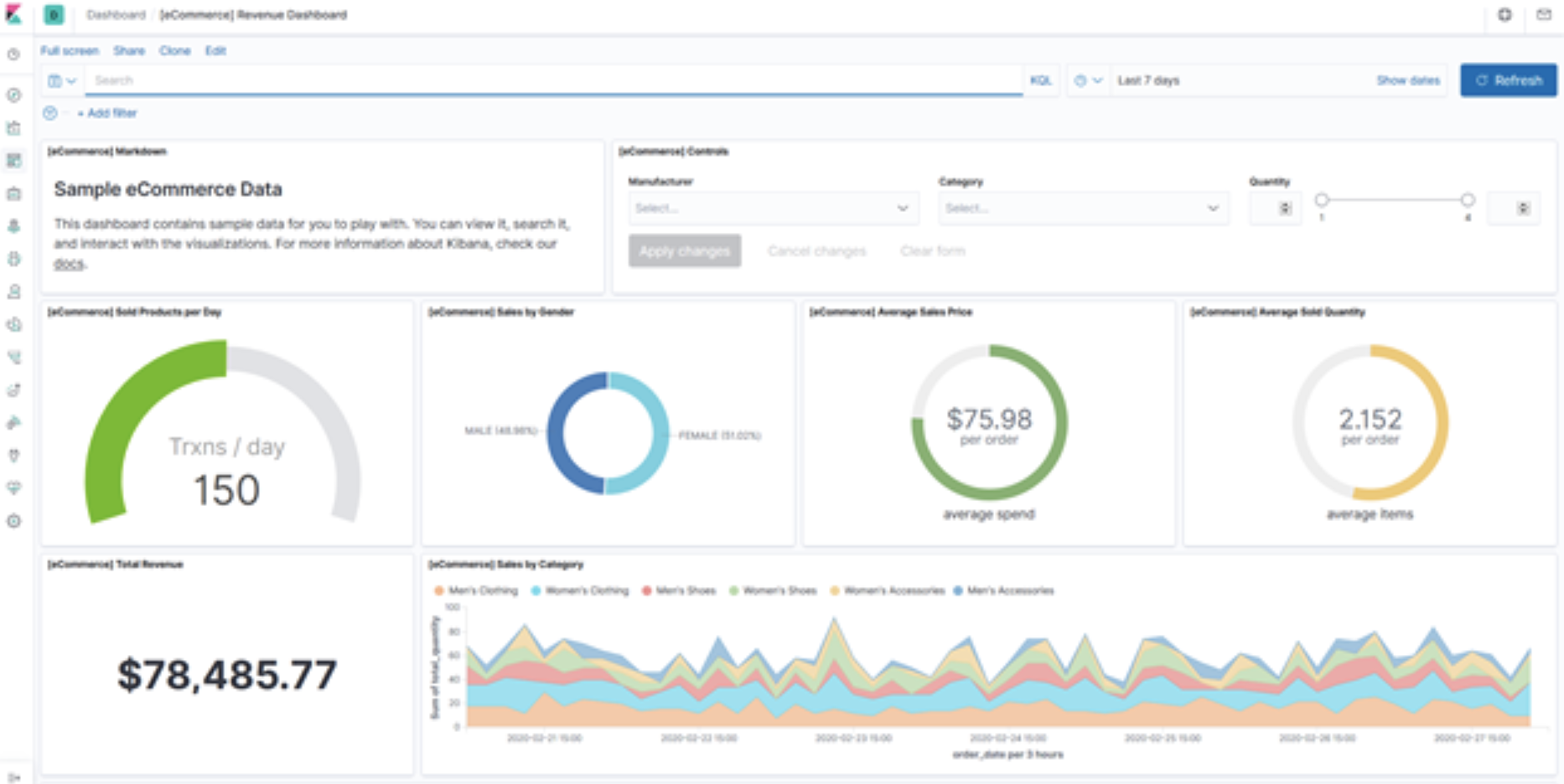Then, access your web browser: https://localhost:5601. Kibana will connect to your Elasticsearch using the service name created by the previous Helm chart. If the ES is empty, Kibana will provide some sample data to import and present a dashboard sample.