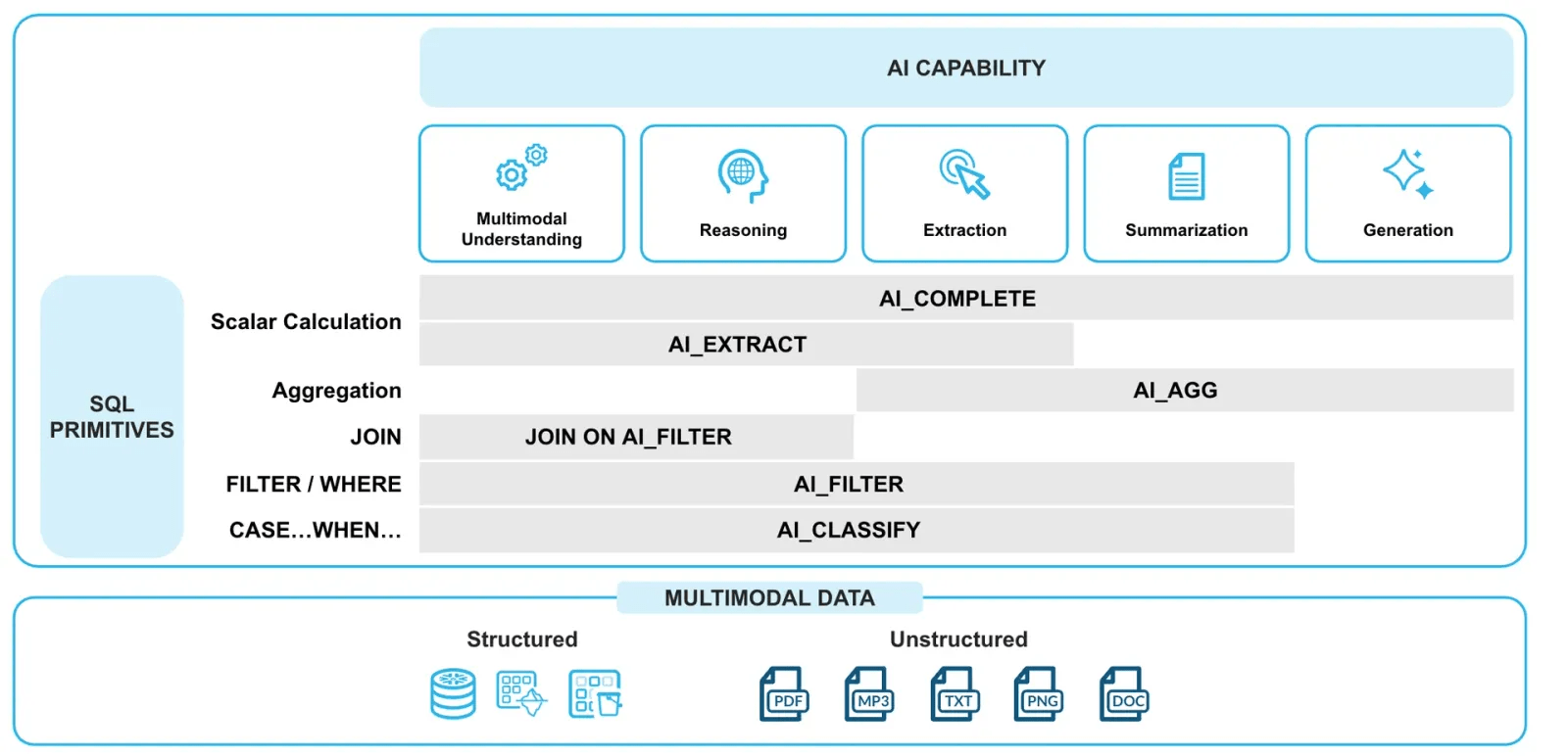 | AI & ML | AISQL | GA | Native SQL functions for LLM-based transforms and inference. |