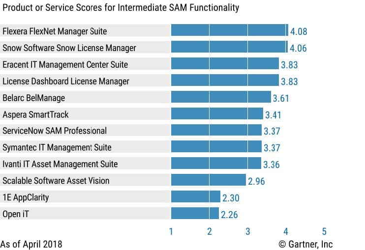 The report also rated each SAM tool’s ability to deliver 10 critical capabilities on a 1-5 scale. These critical capabilities include: