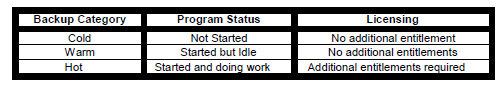 “In cold and warm situations, a separate entitlement for the copy on the backup machine is typically not required and no additional charge applies. In a hot backup situation, the customer must acquire license entitlements sufficient for that machine. All programs running in backup mode must be solely under the customer’s control, even if running at another enterprise’s location. Any program’s unique terms would be documented in the program’s license information document.”