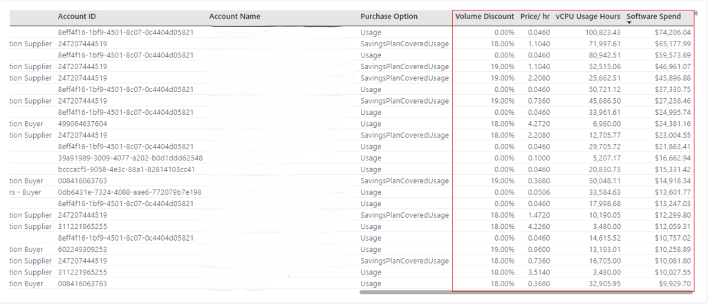 Once you understand where your software is hosted and how much software you purchased it’s time to look at how much of your software is being utilized. Filter your software spend by product and take a deep dive into usage statistics based on your usage rates with vCPU hours and software utilization hours. Gain an understanding of which instances are costing you the most money and if the software that is allocated to those instances is being utilized – cut down on simply overprovisioning software licenses just in case you need them.