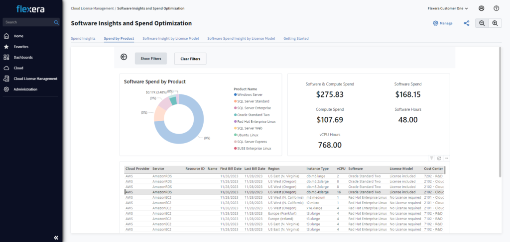 Before you can make optimization decisions on your cloud software you first need an overview of what software you have, and where it’s located. With Flexera’s Cloud License Management offering you can gain clear visibility into your software spend across multiple cloud platforms, diving deeper into your spend by product or license model to gain complete visibility over your cloud software assets.