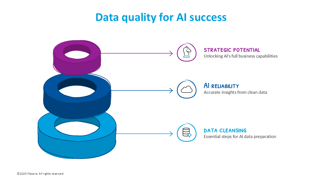 AI thrives on data—but not just any data. For AI systems to deliver accurate, reliable and actionable insights, they require clean, high-quality data. That means it must be consistent, complete, and free from duplicates and irrelevant information. Clean CMDB data is an important first step.