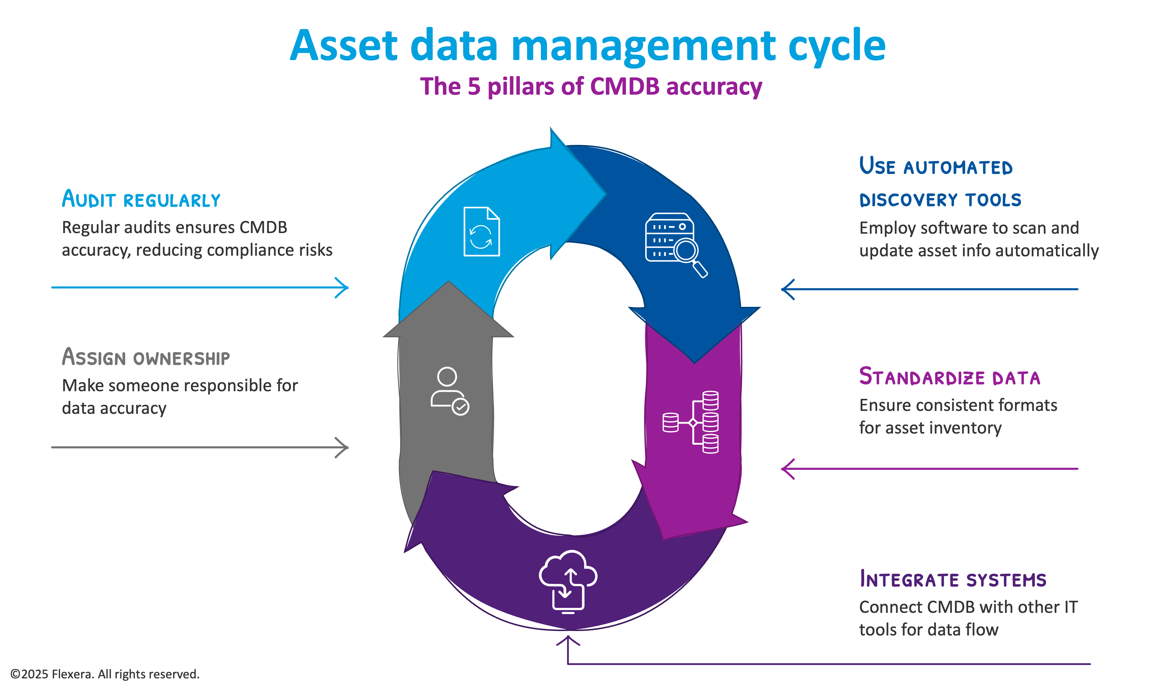 - Assign ownership: Appoint someone to keep asset data accurate and up to date. Flexera supports governance by providing context on assets to specific departments or business units, making accountability clear