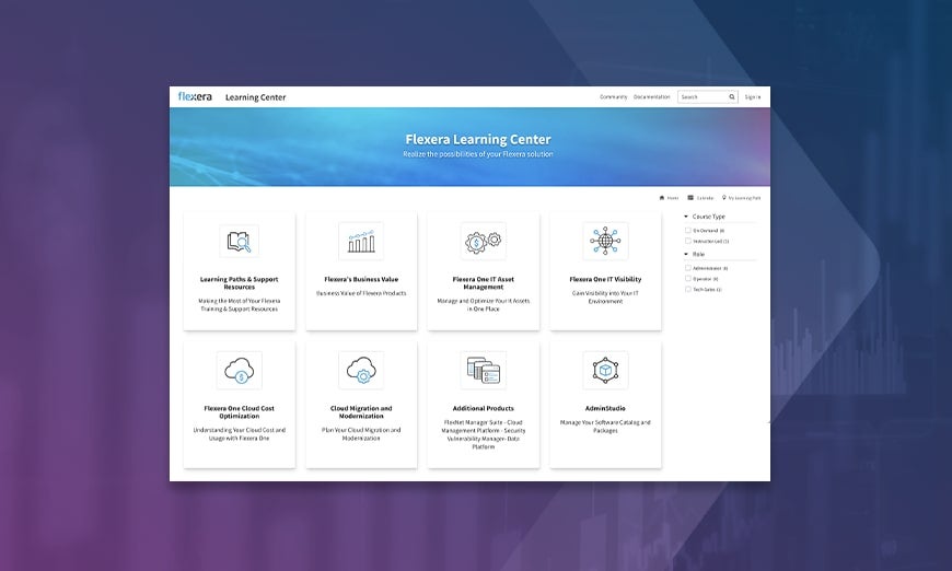 The goal of our training courses is to ensure you get the most from your investment with us. You can begin your learning journey with our free self-guided learning paths available from the Flexera Community; just look for the link to the Learning Center.  You’ll find a complete list of both self-paced, e-learning content and instructor-led training via the links below. Our classes are led by experienced, world-class instructors and include theory and hands-on labs to provide real-world experience. Flexera offers flexible course content and schedules to meet your needs.