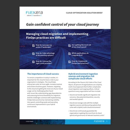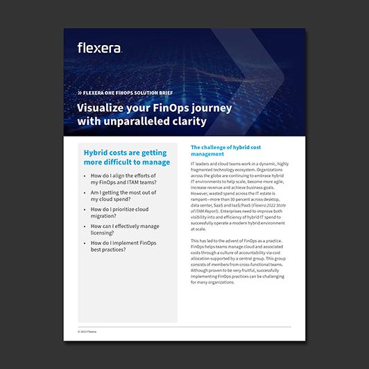Leverage automated governance and financial controls to realize the ROI of your hybrid FinOps strategy. With Flexera, you can track compliance with reserved instance pricing discounts and standardize security policies to close security holes. See beyond your IaaS spend and get visibility to cloud software license and SaaS spend with our integrated platform.