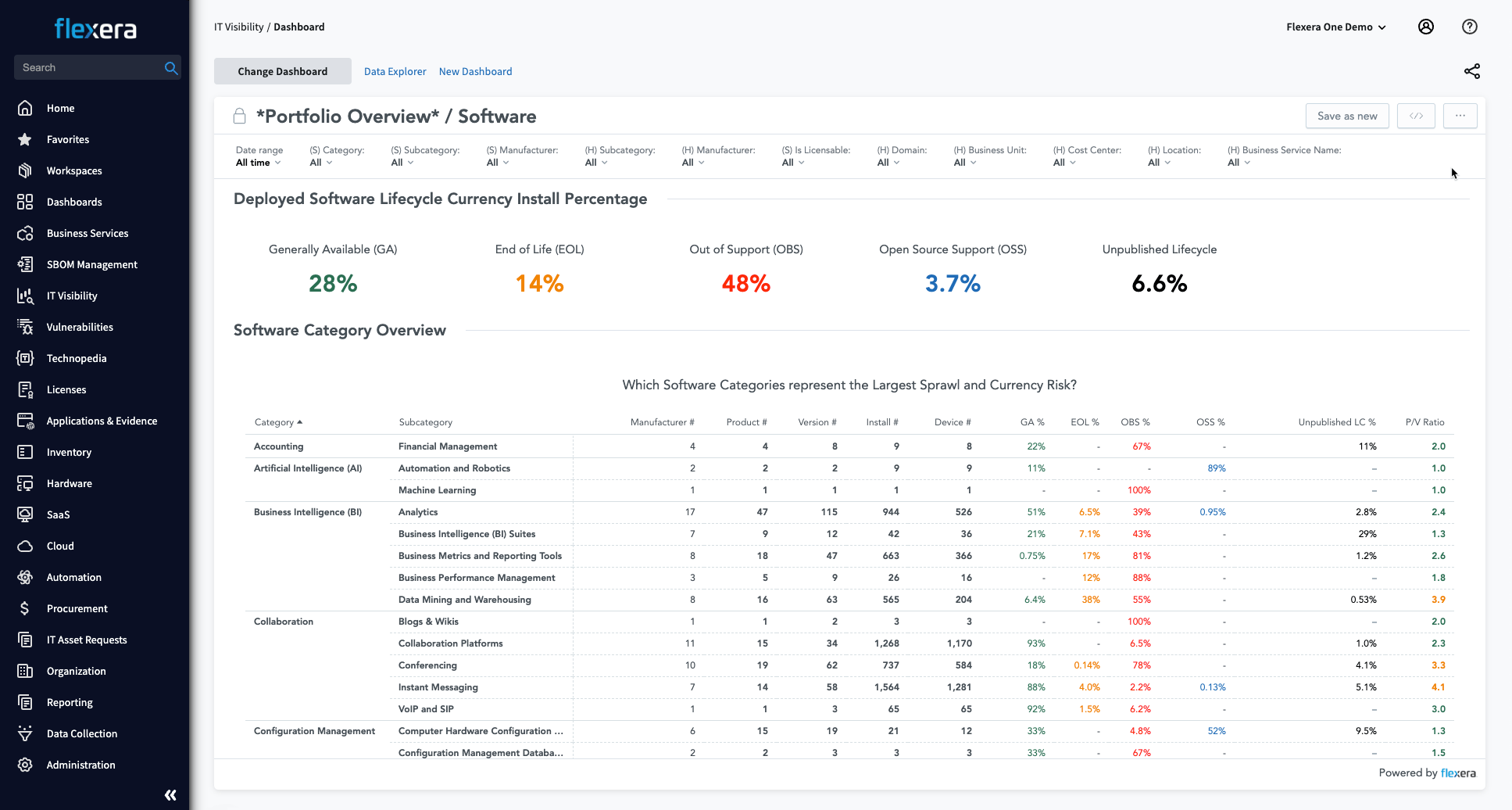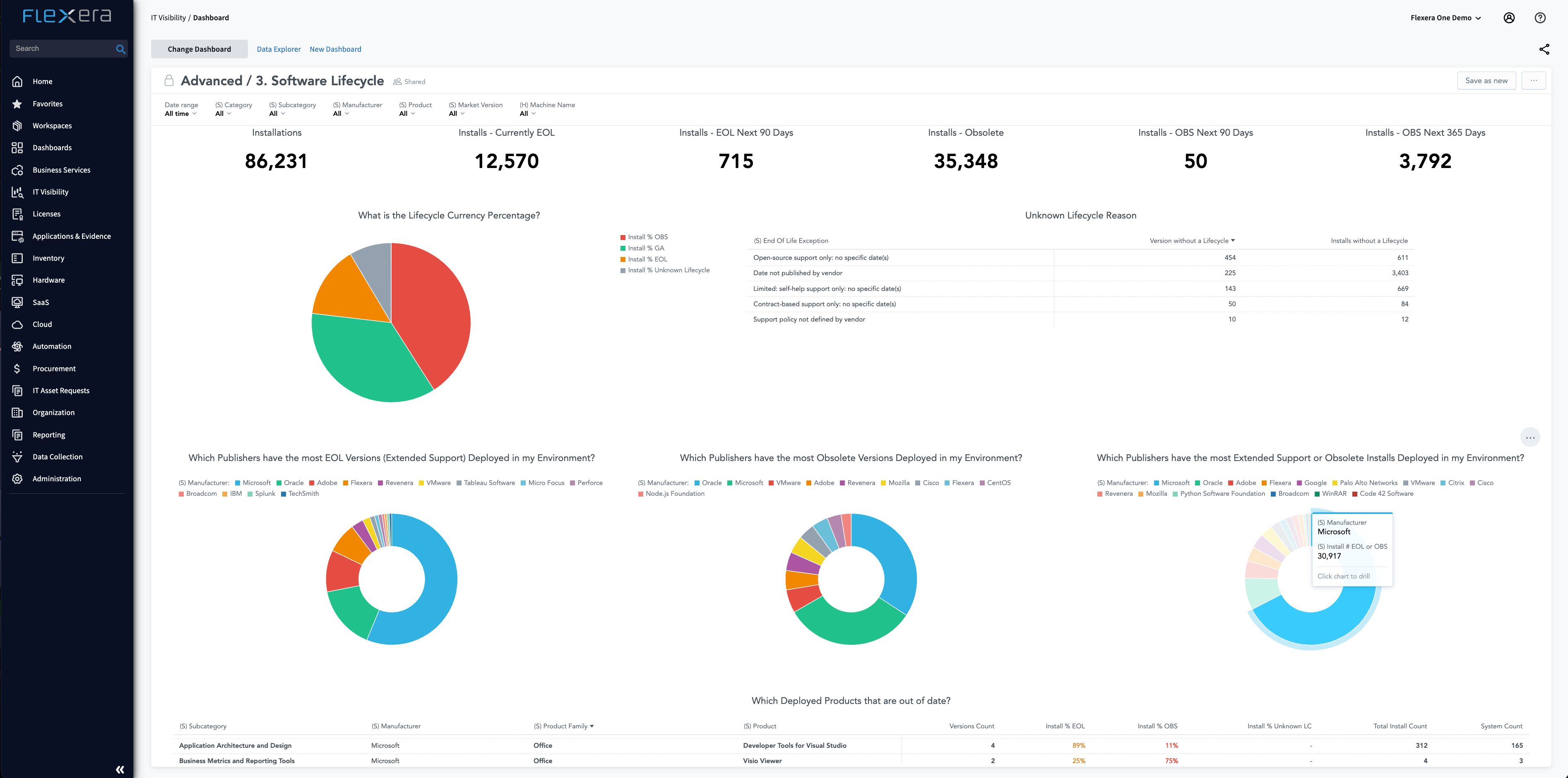 Data is the critical foundation for technology spend and risk management. Gain full, detailed visibility into your technology across your hybrid IT estate. Leverage the next-generation extensible data and analytics platform, Technology Intelligence Platform, in Flexera One IT Visibility to unify siloed data, identify blind spots, reduce risk and drive strategic technology decisions.