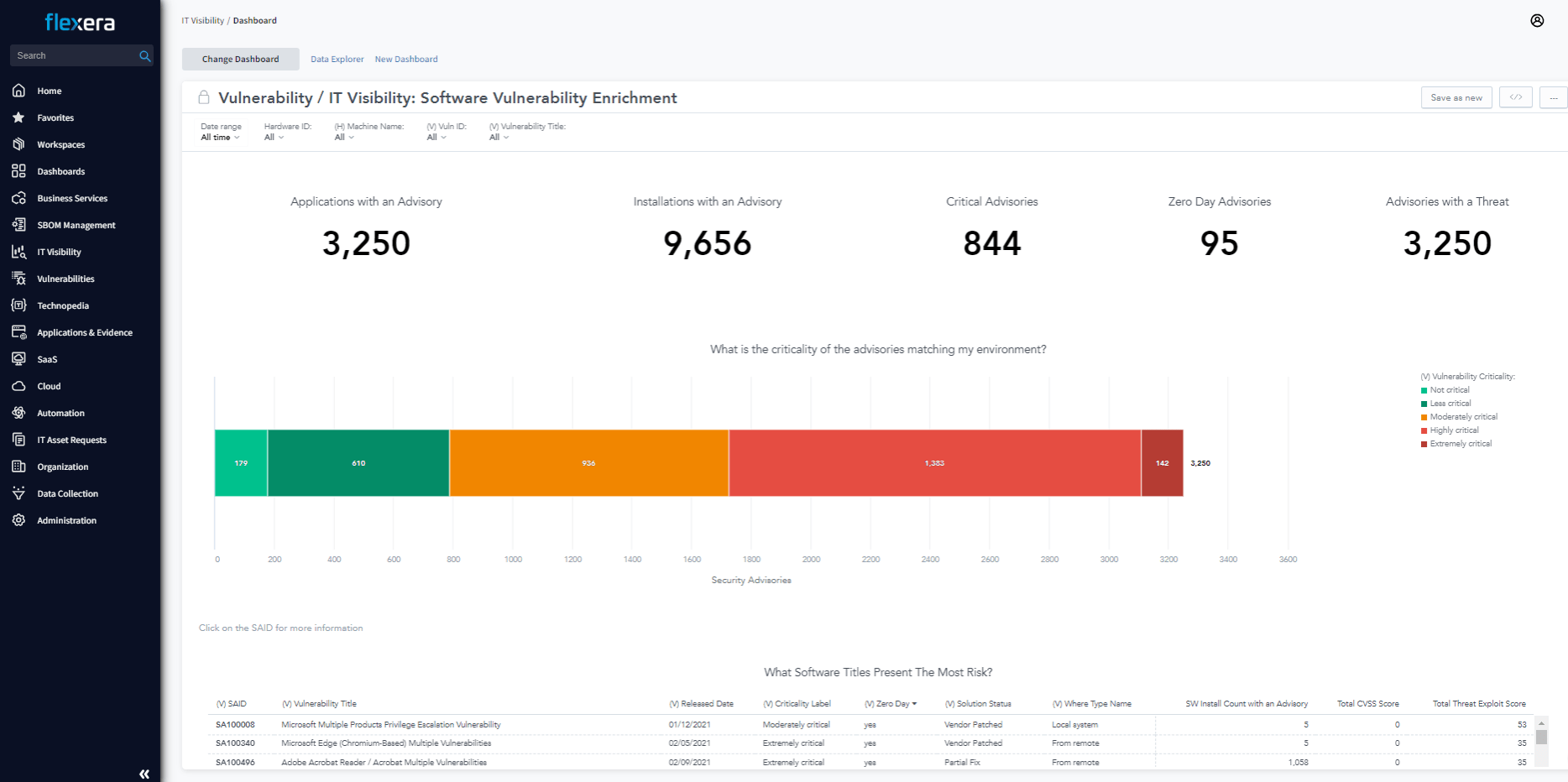 Most security exploits use vulnerabilities that have been documented for over a year, but many organizations don’t have sufficient resources to address them. Support vulnerability identification and remediation with Flexera and prioritize your next steps based on reliable intelligence from Secunia Research.