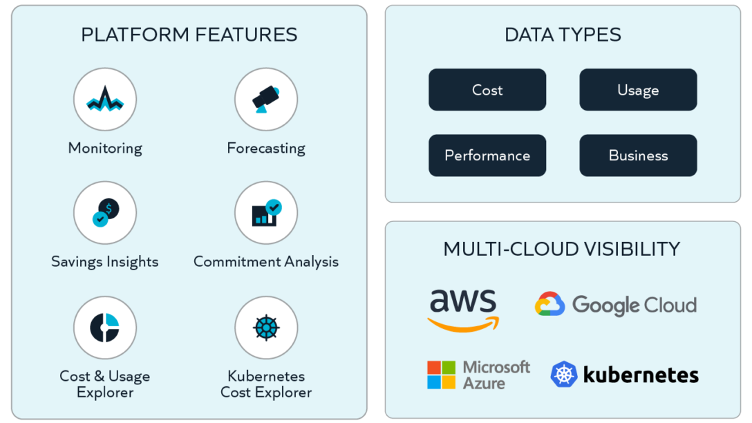 - Unified multi-cloud view: Analyze and optimize costs across AWS, Azure, Google Cloud and your entire hybrid IT estate from a single platform
