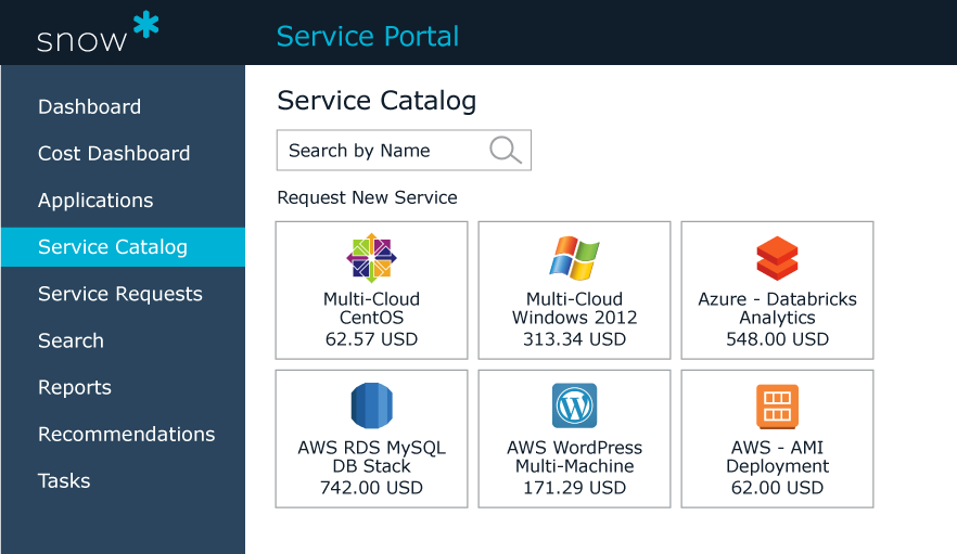 Snow Commander uses automation to provide your end users with quick and easy access to both public and private cloud resources. The comprehensive self-service portal provides you with the visibility needed to effectively govern resource usage, while self-service provisioning automation capabilities ensure that even the most agile development teams don’t miss a beat.