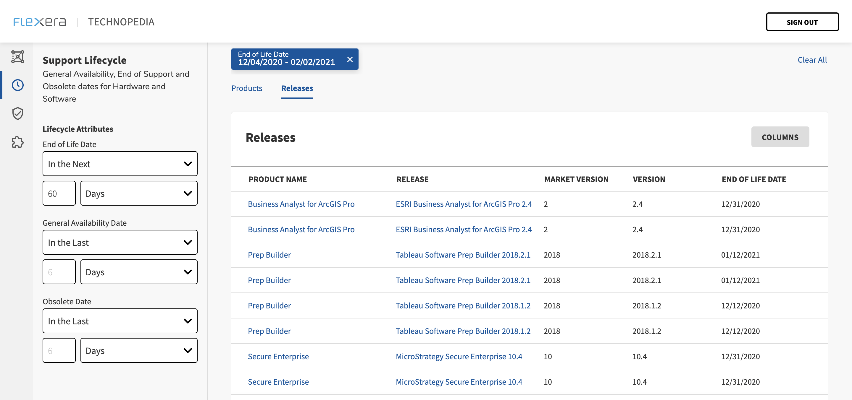 Flexera’s end of life (EOL)/end of support (EOS) data enables you to make critical decisions about your environment based on what’s no longer being patched or supported. Technopedia’s lifecycle data empowers you to forecast risk in your critical business services based on upcoming EOL/EOS dates. For the resources that can’t be upgraded, you can anticipate the impact of increased costs for extended support.