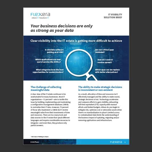 Control your entire IT asset landscape by using Technopedia, the most trusted and comprehensive source of hardware, software, SaaS and cloud product information in the world. Technopedia powers the Technology Intelligence Platform—the next-generation data and analytics platform for Flexera One—and gives you the most complete IT asset intelligence available, with the ability to identify more than 5 million hardware and software products.