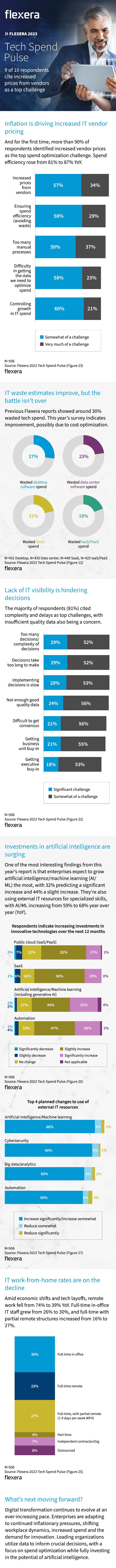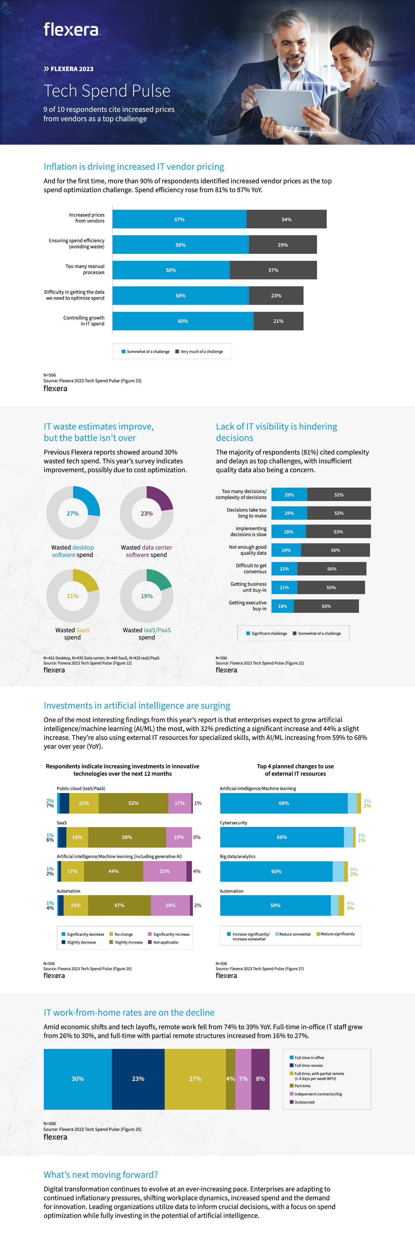 Discover the latest technology and spend issues keeping IT leaders up at night as they develop strategies that influence the trajectory of their businesses in Flexera’s 2023 Tech Spend Pulse.