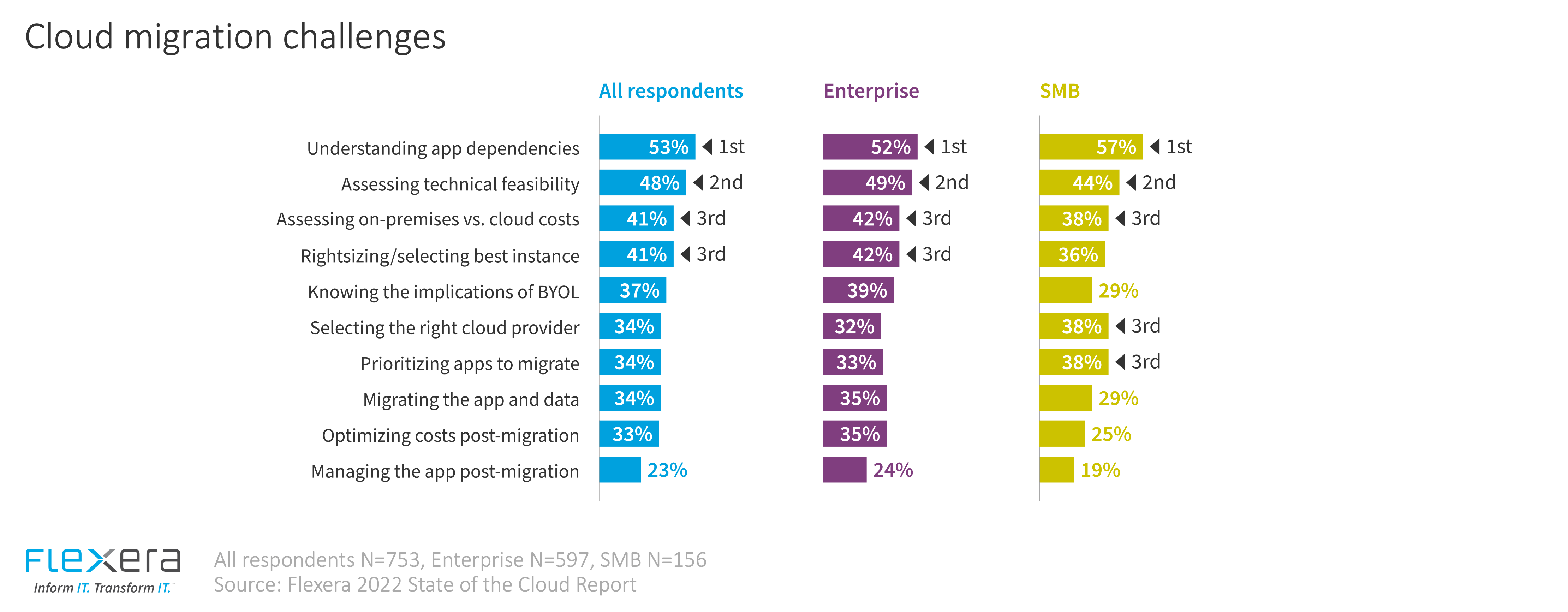 According to Flexera’s 2022 State of the Cloud Report, 59 percent of organizations plan to focus on cloud migration in the next 12 months. However, 51 percent of these organizations also cited understanding app dependencies as a top challenge they face along with prioritizing applications when executing cloud migration.