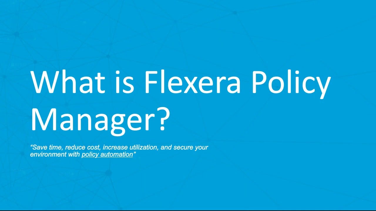No one can deny that cloud is becoming the new normal in IT environments. As organizations continue to migrate to the cloud, they struggle to manage their cost, govern usage, keep a pulse on security and maintain compliance. Flexera’s cloud management platform with it’s out of the box policies provides everything an organization needs to get control of their cloud spend, eliminate waste, avoid security holes and enforce compliance.
