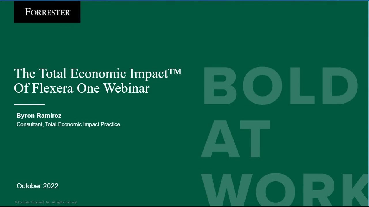 Join guest speaker, Forrester’s Byron Ramirez, Total Economic Impact™ Consultant, and Flexera’s Kevin Miller, Director of Product Marketing, as they dive into the recently commissioned Forrester Consulting Total Economic Impact™ (TEI) Study of the Flexera One solution. The study concluded that for a composite organization, comprised of interviewee feedback and study results, the three-year financial impact could have ROI of 421 percent, and payback within six months.