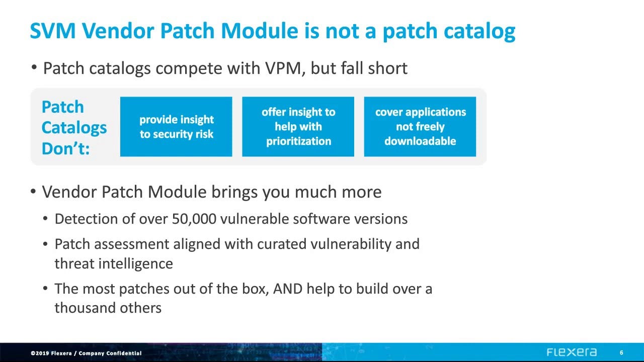In this highly informative webinar, Bob Kelly, Director of Product Management introduces the new SVM Vendor Patch Module and how SVM research, assessment, and prioritization capabilities (including Threat Intel) can now leverage the largest collection of patch data available!