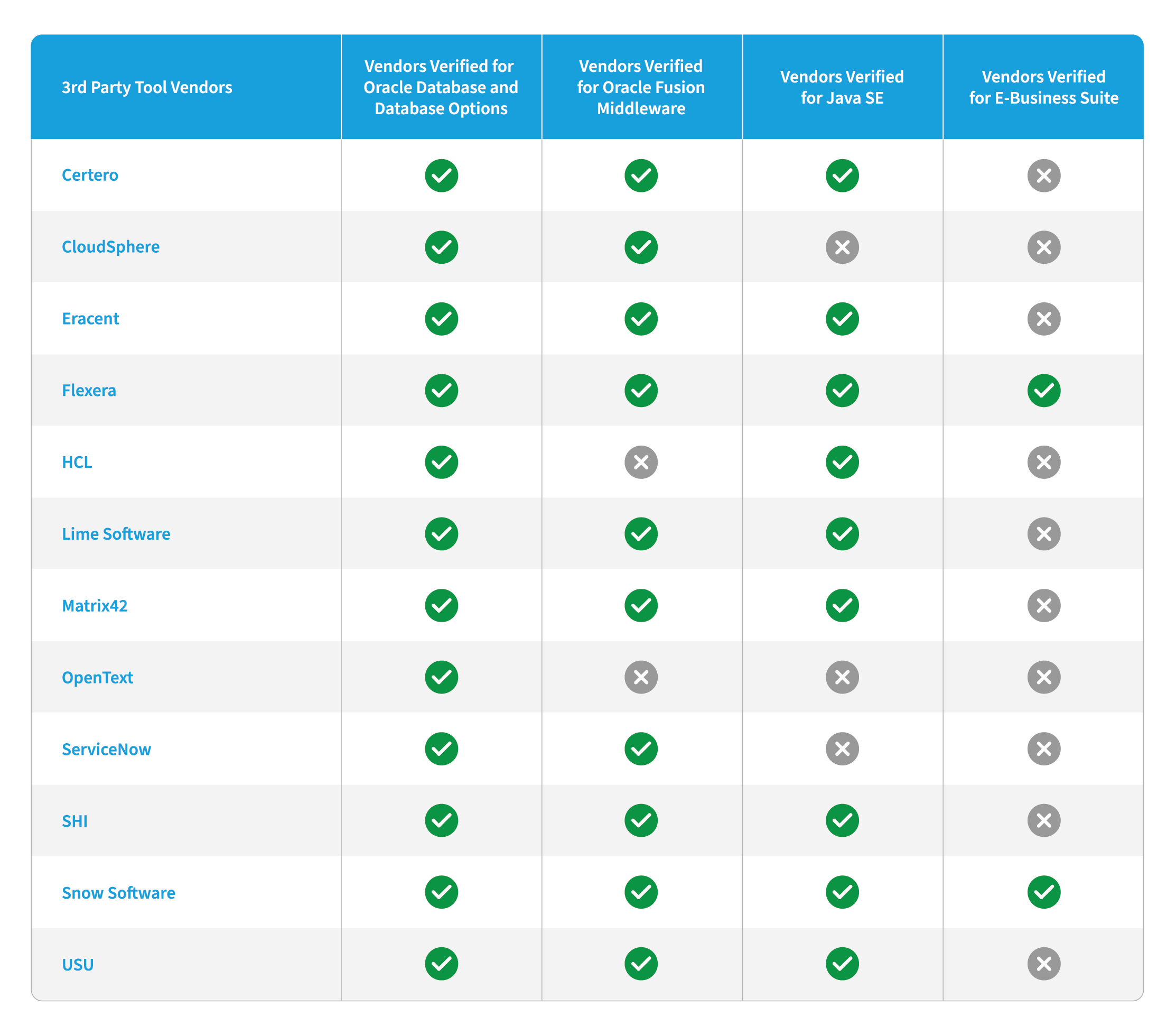 You can’t have a prudent software renewal with inaccurate data. Flexera didn’t happen upon being a leader in software asset management. We understand that effective asset management hinges on trustworthy data. Flexera has the largest software catalog (across SaaS, on-premises and cloud environments) in the industry and our solutions are verified for data accuracy against all categories of Oracle products. Trustworthy and verified data helps you prepare for renewals faster with confidence.