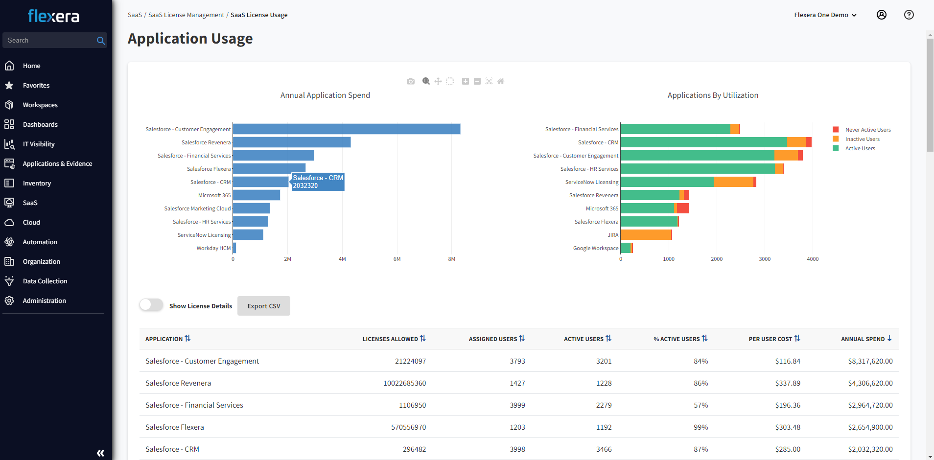 Flexera provides tools to discover all SaaS applications in use (including shadow IT), track usage, manage renewal dates for myriad subscriptions and identify redundant or underutilized SaaS tools to optimize spend.