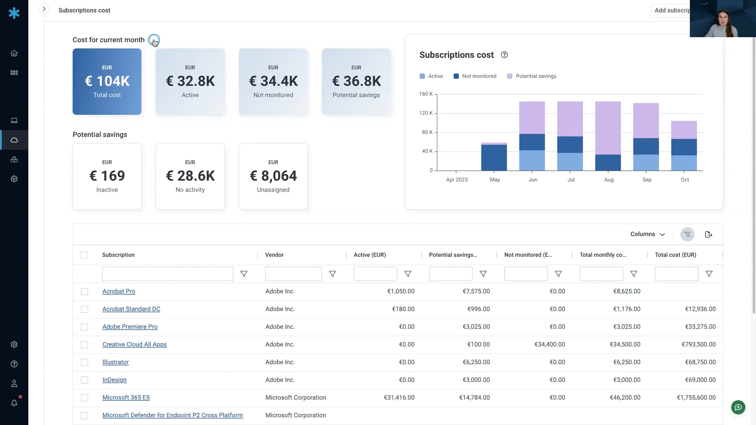 • SaaS spend rationalization: Discover all SaaS usage, identify redundant subscriptions and optimize SaaS licenses