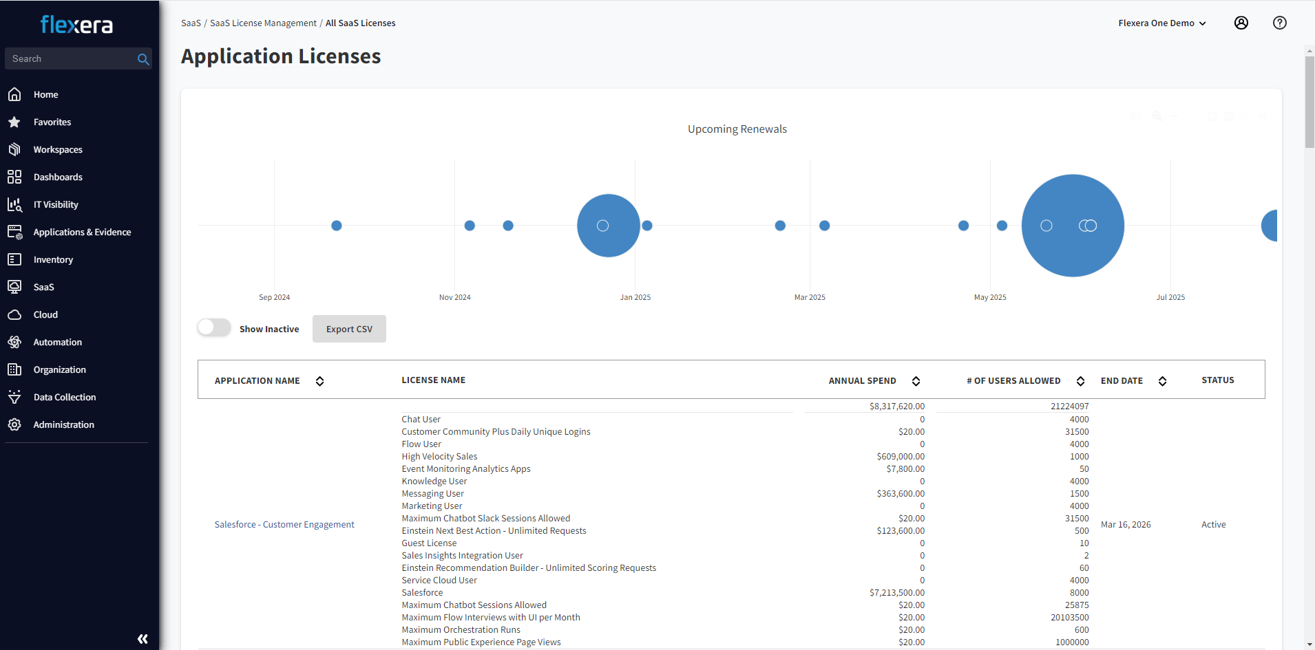 Flexera SaaS Manager has been helping us for a long time. Recently their Salesforce Power BI dashboard was upgraded to reflect the data and attributes at the roles and profiles level. This dashboard gives a comprehensive view of Salesforce users and licenses. This is critical for leadership to assess application adoption, provides opportunities for clean-up of unused licenses and achieve cost efficiencies. Thank you very much, Flexera.